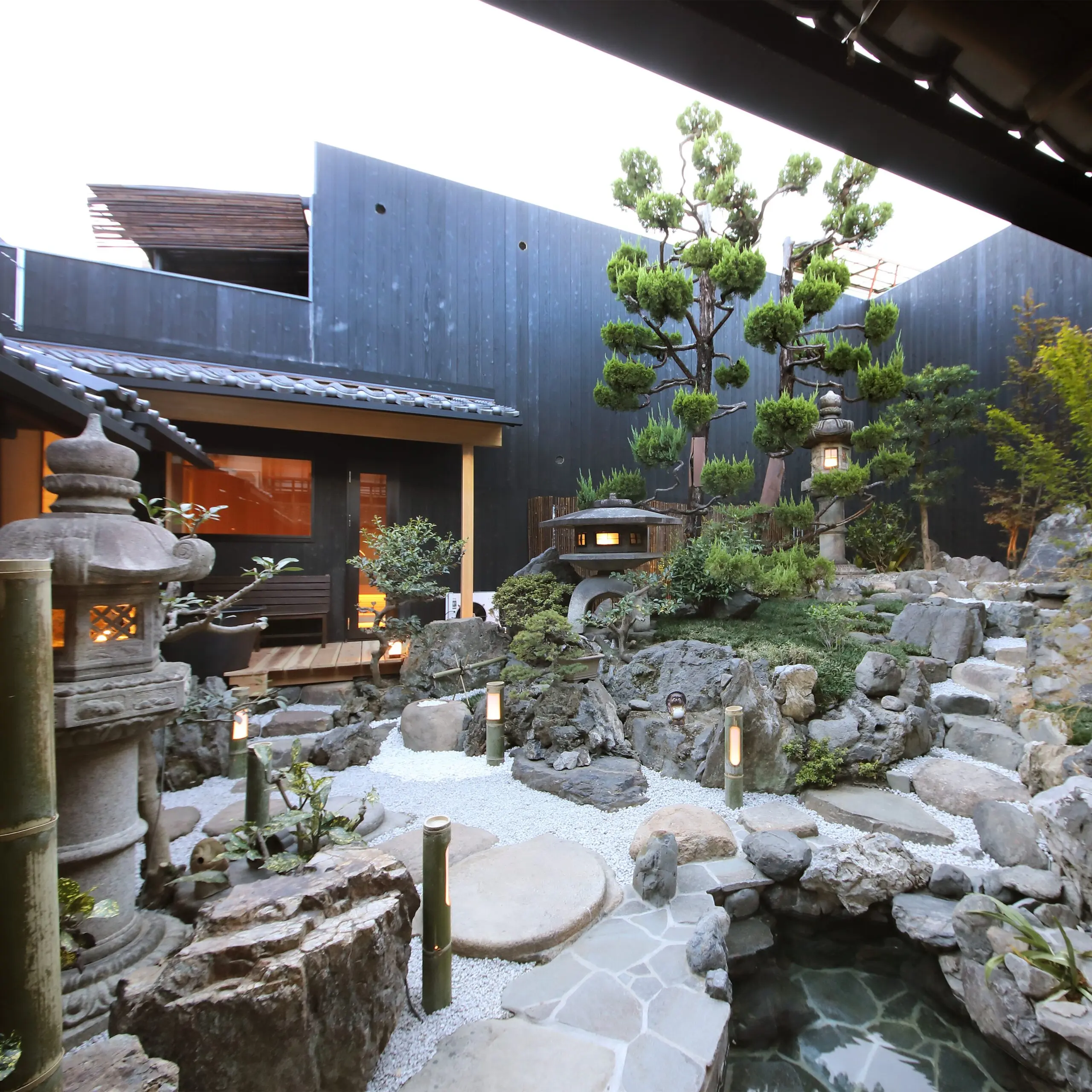 四季の移ろいを映す内庭には、丹念に手入れを重ねた景観の中に、趣深い露天風呂を設えております。京都の町中にありながら、喧騒から離れた静寂の中で、心安らぐひとときをお過ごしいただけます。
